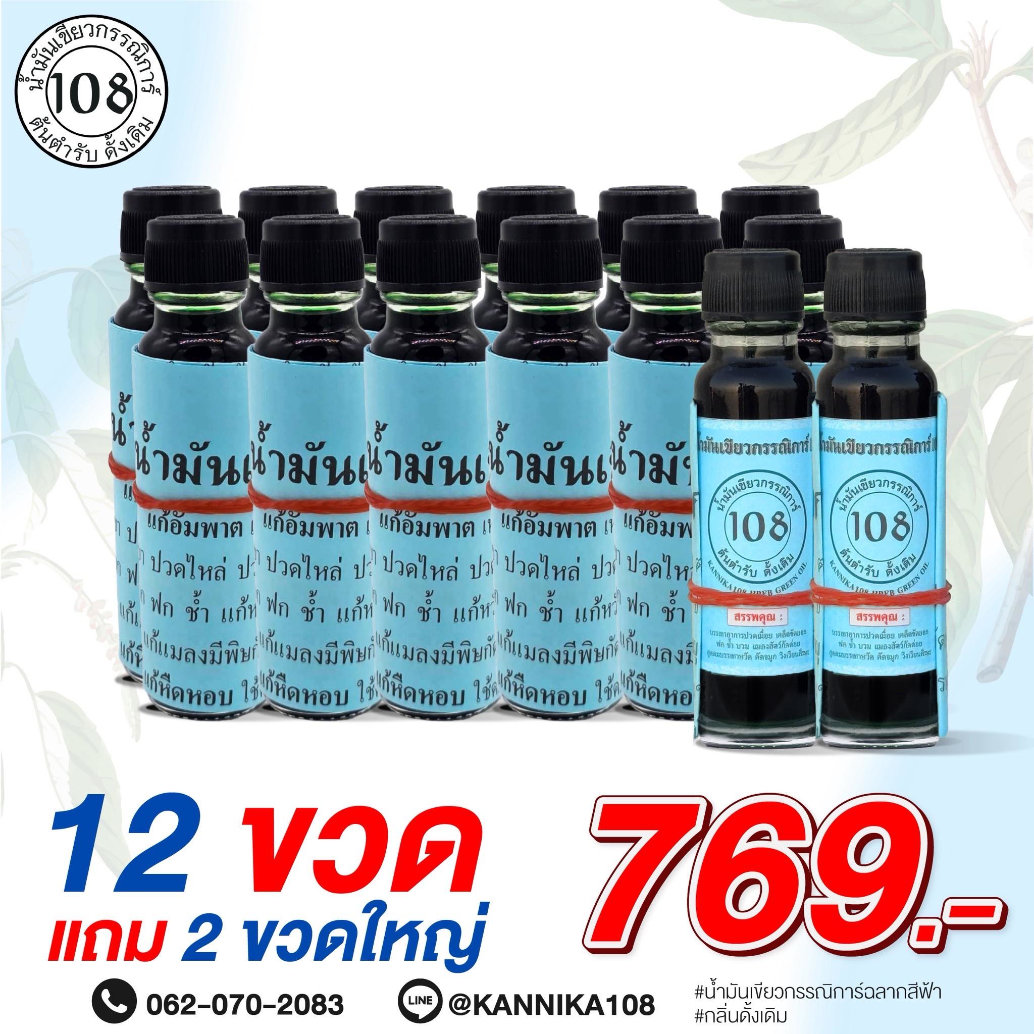 ชื่อ: น้ำมันเขียวกรรณิการ์ต้นตำรับดั้งเดิม ชุด (12ขวดใหญ่ แถม 2 ขวดใหญ่)  769.-